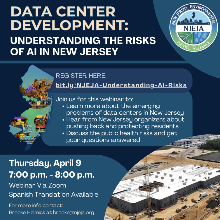 From AI chatbots to Google Drive, data centers are the hidden infrastructure that powers everyday life on the internet. Their rapid expansion over the past few years is creating a new set of environmental‑justice problems in New Jersey; dozens of data‑center proposals are targeting water‑stressed, overburdened and grid‑constrained communities — often with very minimal public review or notice. This convergence of high power demand, massive water use, and limited community oversight is turning the Garden State into a testing ground for climate‑unfriendly, health‑hazarding technology.